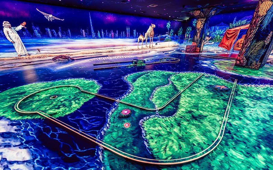 3D Blacklight Minigolf Dubai is an exciting and unique experience for both locals and tourists visiting Dubai. This innovative concept combines the classic game of mini-golf with cutting-edge technology to create a visually stunning and immersive environment. One of the standout features of 3D Blacklight Minigolf Dubai is the use of 3D glasses, which add an extra layer of depth and realism to the already visually stunning course. As players don the glasses, they are transported into a world of neon colors and intricate designs that seem to pop off the walls and obstacles of the course. In addition to the stunning visuals, 3D Blacklight Minigolf Dubai also offers a unique gaming experience. The 3D Blacklight Minigolf experience in Dubai is a true feast for the senses. From the moment you step through the doors, you’re enveloped in a world of vibrant colors, mesmerizing visuals, and a pulsating soundtrack that sets the tone for an unforgettable adventure. At the heart of the 3D Blacklight Minigolf experience in Dubai is the captivating use of blacklight technology. This innovative approach to lighting creates a visual spectacle that is truly unlike anything. The glow-in-the-dark surfaces and neon-infused obstacles defy the laws of physics, creating a sense of wonder and awe that is palpable throughout the course.