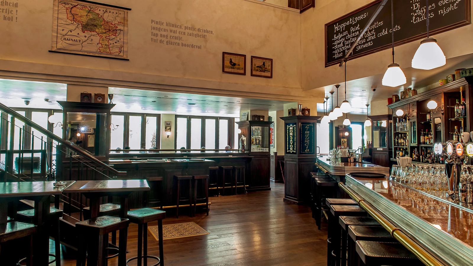 - Design: The cafe typically features a traditional Belgian pub style with rustic wooden furniture, warm lighting, and a cozy atmosphere that evokes the charm of Belgian beer halls. The decor often includes vintage beer posters, barrels, and other memorabilia related to Belgian brewing.